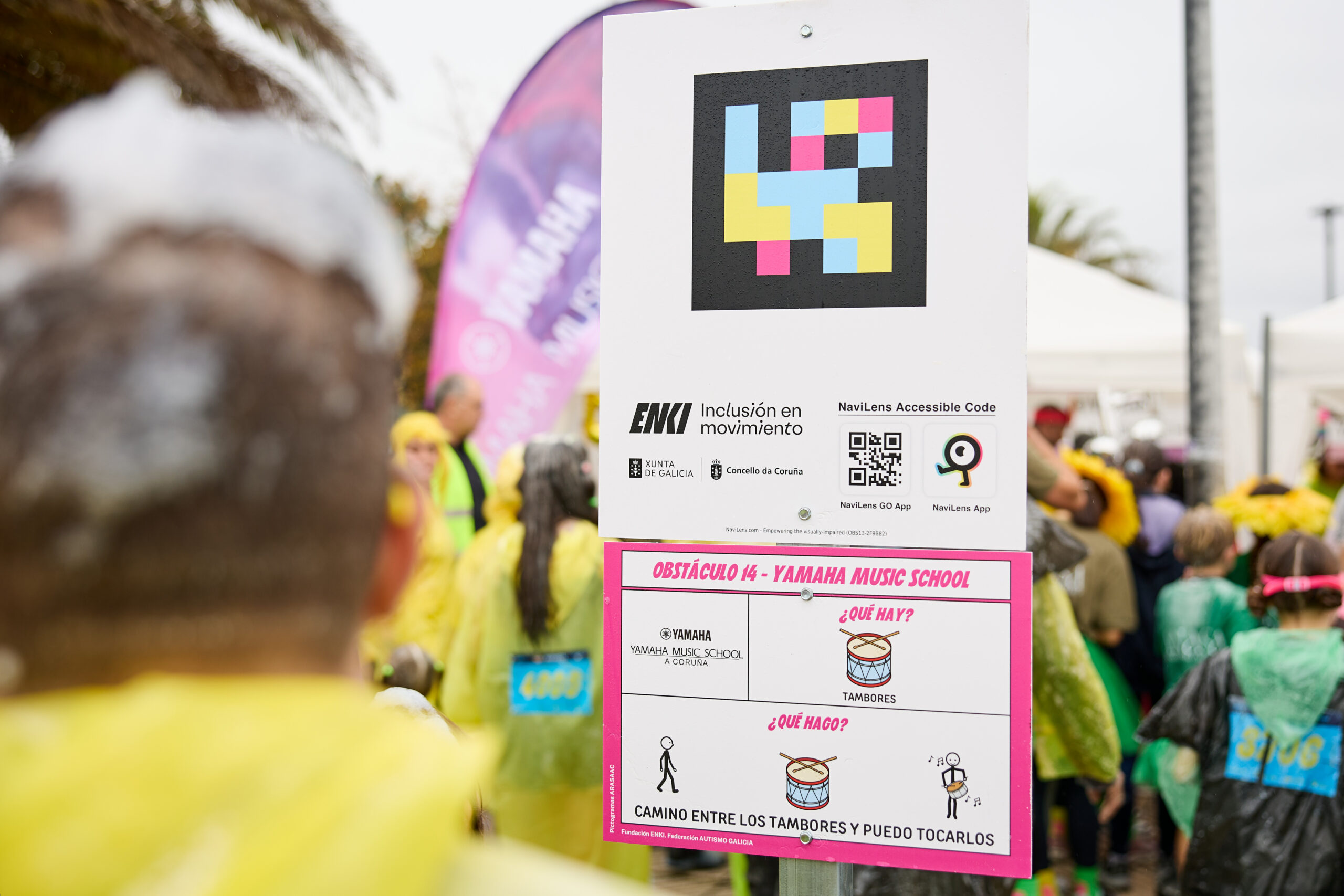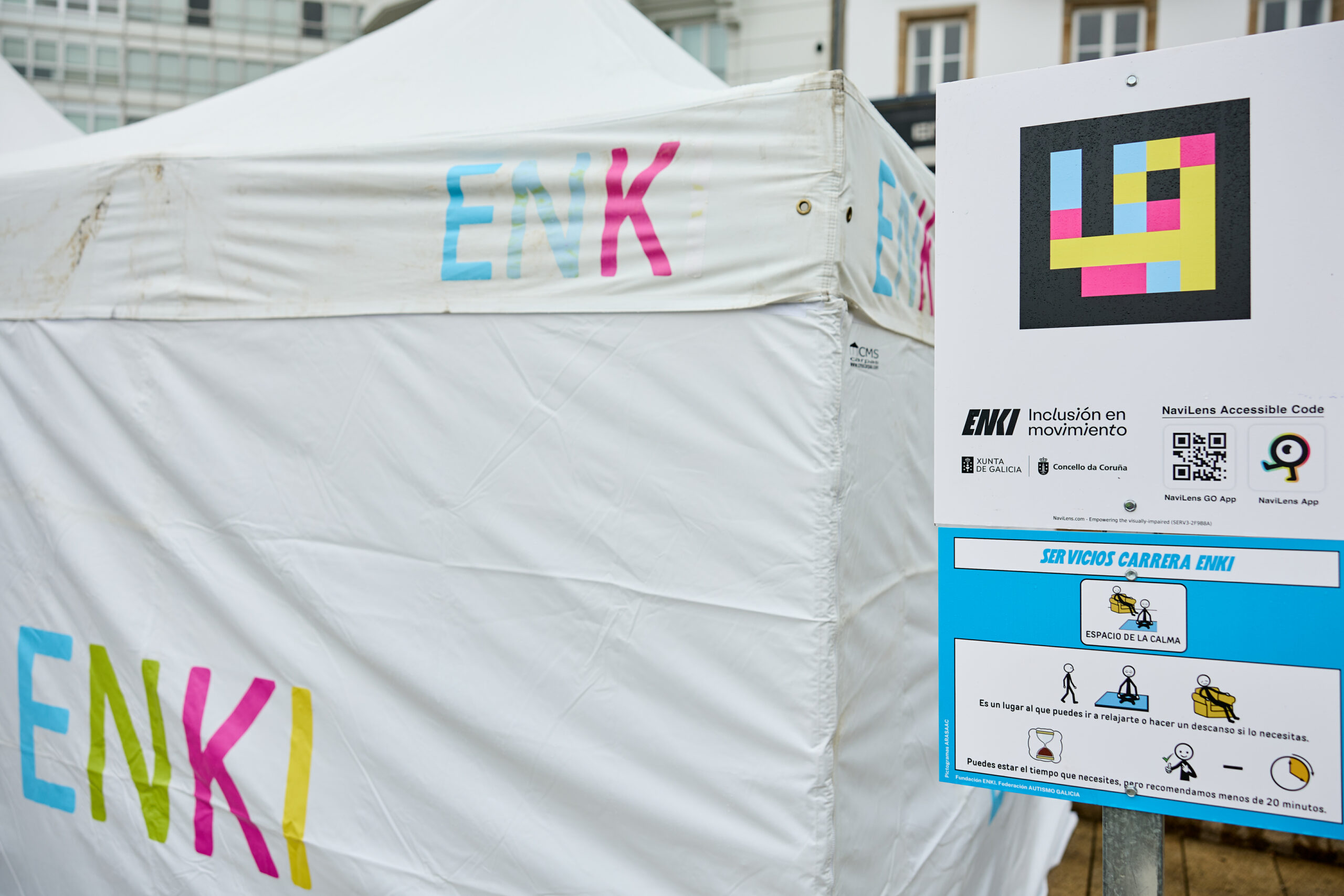 Mediante la aplicación NaviLens (disponible para dispositivos iOS y Android), las personas con dificultades visuales pueden guiarse por señales acústicas para llegar hasta el elemento señalizado y obtener información audible contextualizada a ese lugar y ese momento. Este código es la puerta de acceso a información de gran utilidad. Por lo tanto, animamos a todos a descargar la aplicación NaviLens antes de llegar a la Carrera ENKI 2024.